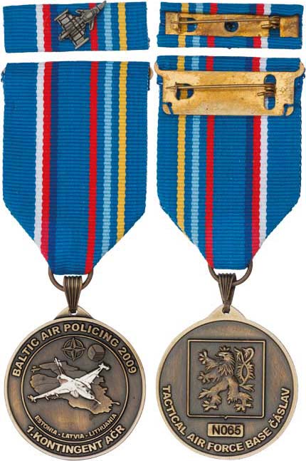Čáslav - Základna taktického letectva - mise Baltic 2009 (ochrana vzd.prostoru pobaltských států), čísl. (65), původní stuha, stužka s letadlem, původní etue