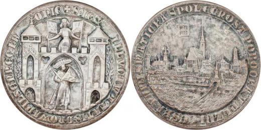 Uchytilová-Kučová - 50 let pobočky 1973 - gotická pečeť města / pohled na středověkou Plzeň, vročení, opis, Nesign., Ag900, 40mm, 35.719g, BK.4 (100ks) R!