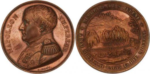 Napoleon I. - převezení ostatků do Francie 1840 -AE40 poprsí zprava, opis/ hrob císaře na ostrově sv.Heleny a opis, Sign.A.Bovy, AE 40mm, 34.815g, dřevěná etue