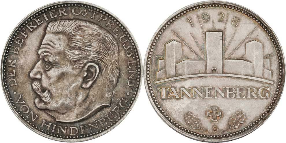 Oertel - P.v.Hindenburg - volba presidentem 1928 - hlava zleva, opis / památník u Tannenbergu, nápis, železný kříž a ratolesti, Ag900, 36mm, 24.916g, pat.