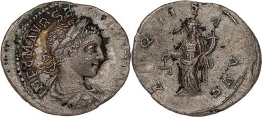 AR Denár, Rv:"AEQVITAS.AVG.", stoj. Aequitas, S.2102, RIC.127 - mincovna Řím - ražba z let 222 - 228, exc., nedor., patina