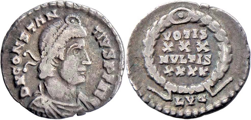 AR Siliqua, Rv:"VOTIS.XXX.MVLTIS.XXXX." RIC.8.216, S.3897 - mincovna Lugdunum - ražba z let 360 - 361, 1.709g, oválný střížek, pěkná patina R!