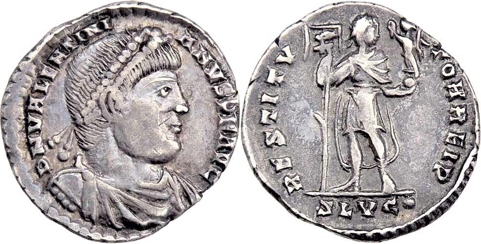 AR Siliqua, Rv:"RESTITVTOR.REIP.", S.3996, RIC.9.6b - Lugdunum - ražba z let 364 - 367, nep.exc., pěkná patina R!