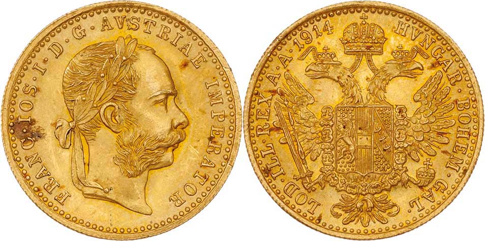 Dukát 1914, 3.493g, nep.hr., nep.rysky, skvrnky