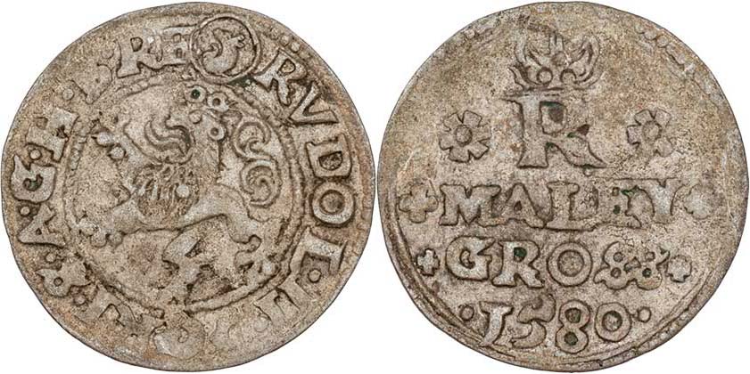 Malý groš 1580, Jáchymov-Kadner, HN.3 (opis 7b), nápis "+ MALEY +/+ GROSS +/. 1580 .", 1.067g, nedor., pěkná patina
