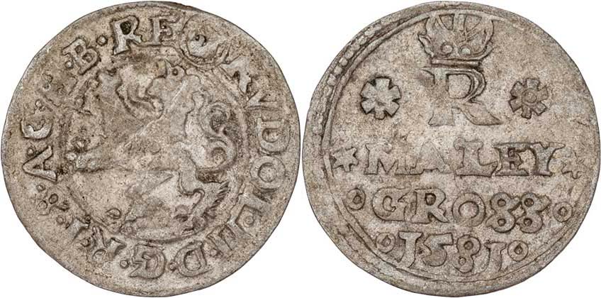 Malý groš 1581, Jáchymov-Kadner, HN.3 (opis 7b), nápis "* MALEY */o GROSS o/o 1581 o", 1.009g, nep.nedor., pěkná patina
