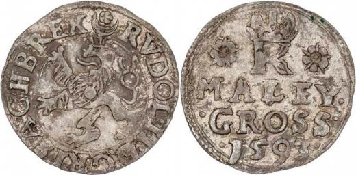 Malý groš 1593, Jáchymov-Hoffmann, HN.8b (opis 7c), nápis ". MALEY ./. GROSS ./. 1593 .", 1.011g, nep.nedor., pěkná patina