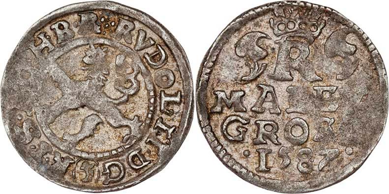 Malý groš 1587, Č.Budějovice-Mattighoffer, HN.25a (7a), nápis " MALEY / GROSS /. 1587 .", 0.950g, nep.nedor., pěkná patina