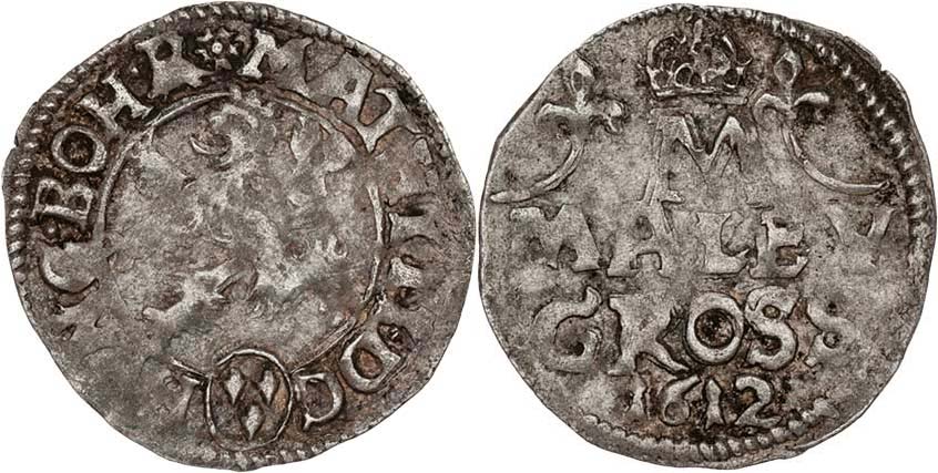 Malý groš 1612, K.Hora-Šultys, HN.2 (opis 2), nápis " MALEY / GROSS / 1612 ", 0.849g, nep.nedor., nep.dvojráz, pěkná patina