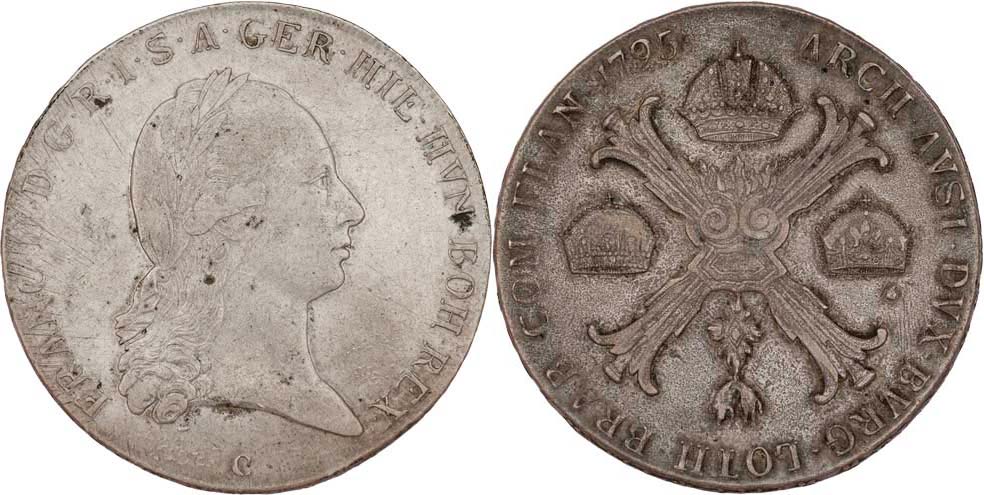 Tolar křížový 1795 C, 29.481g, nep.hr., nep.rysky, mírně just., skvrnky, patina
