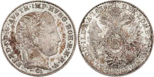 3 Krejcar 1838 C, 1.663g, patina R!