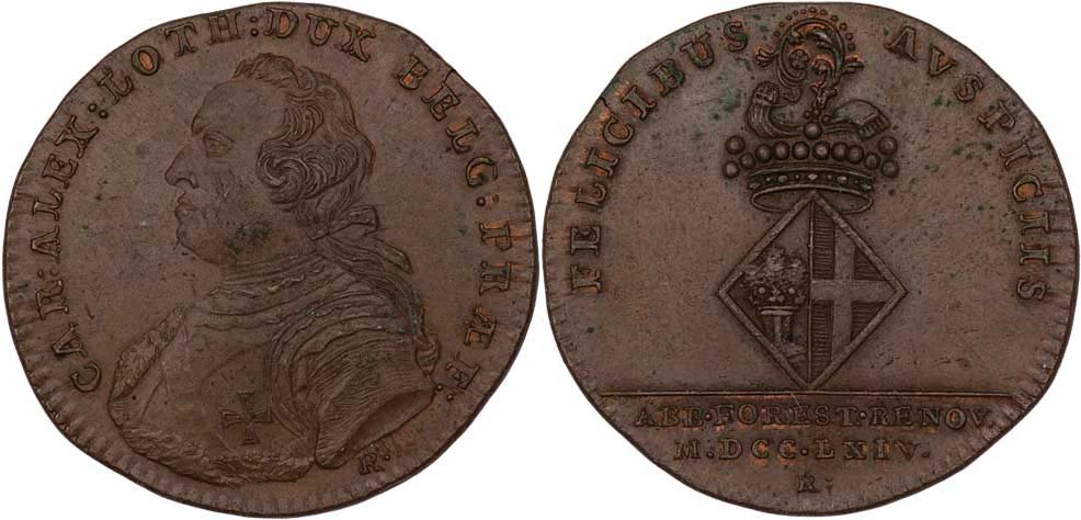 Roettiers - AE pamětní jeton na rok 1764 - poprsí zleva, opis / korunovaný znak, opis a nápis, Sign.R, Cu 32mm, 12.347g, M.2118, H.neuv., pěkná patina