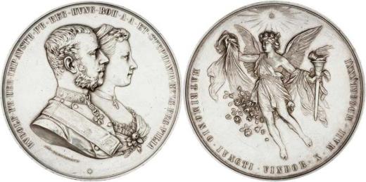 Tautenhayn - AR medaile na památku sňatku 10.V.1881 - dvojportrét zprava, opis / anděl s pochodní a květy, opis, 55mm, 81.999g, Don.3252, H.4002, dr.hr.,dr.rys.
