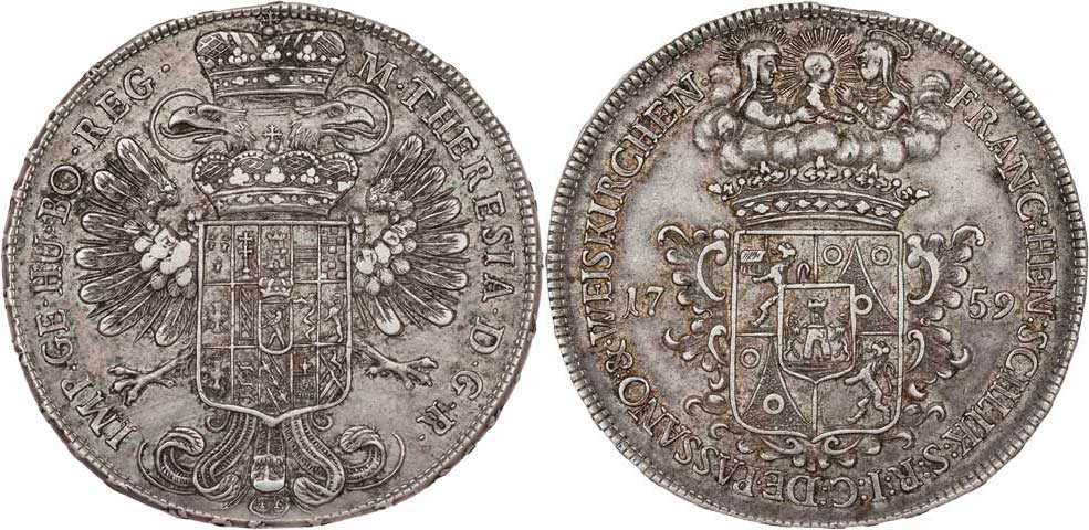 Tolar 1759, Praha-Erdmann (razidla zhotovil G.Toda ve Vídni - značka T.F. - raženo pouze 1000 ks), PR.196, Don.3847, BPM.505, 29.164g, pěkná patina RR!