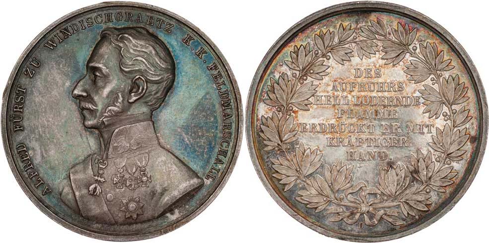 Drentwett - AR medaile na potlačení revoluce (1848) - poprsí zleva, opis / 6-řádk.německý nápis ve vavřín. věnci, Sign.D, 38mm, 17.821g, Don.4040, H.5705, dr.hr