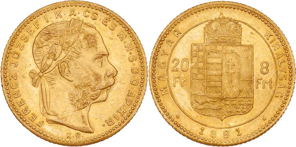 8 Zlatník 1881 KB, 6.446g, nep.hr., nep.rysky, patina
