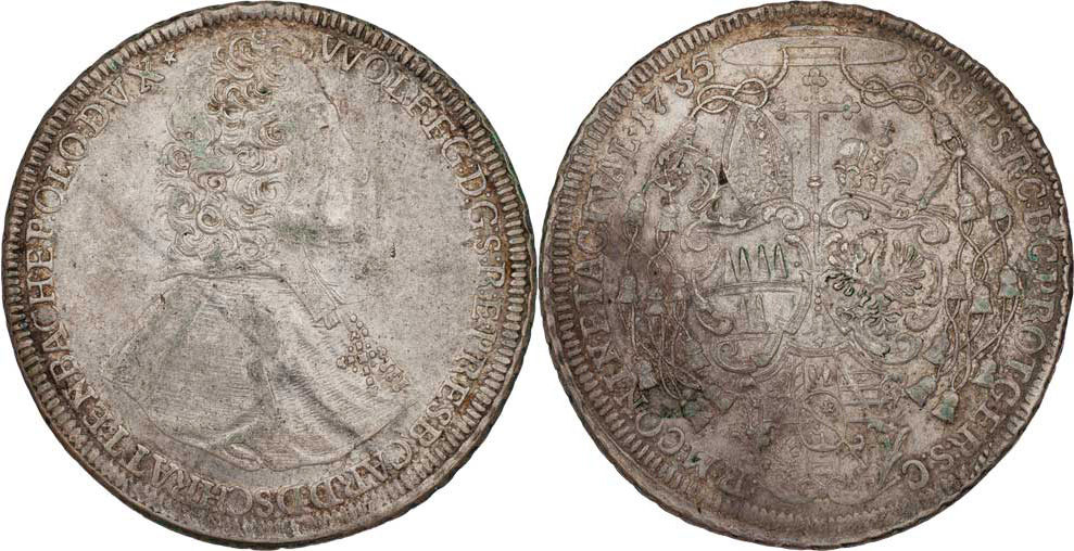 Tolar 1735, S-V.763 (S/T), 28.347g, na hraně stopa po zkoušce kovu, dr.hr., dr.rysky, patina
