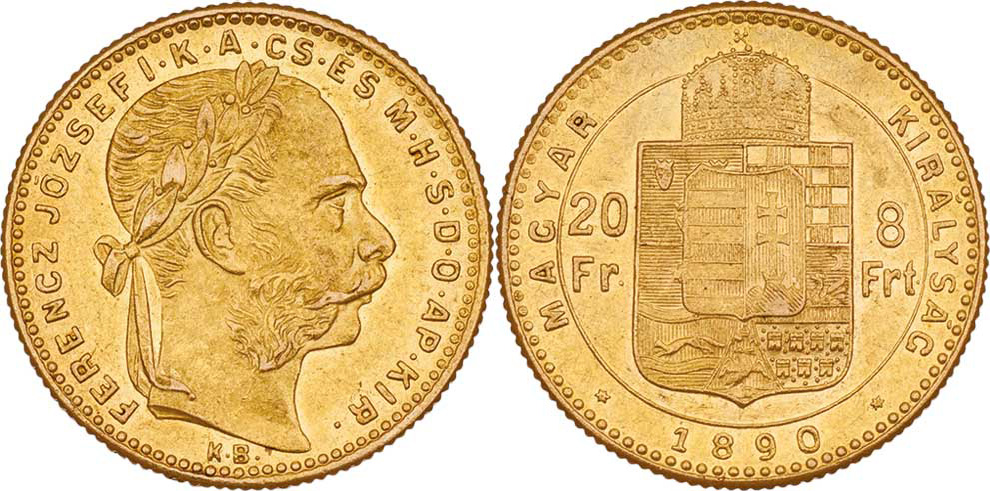 8 Zlatník 1890 KB - se znakem Rijeky, 6.439g, nep.hr., nep.rysky