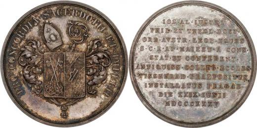 Nesign. - AR instalační medaile 19.VI.1835 - dvojitý znak pod mitrou a berlou, opis / 10-řádkový nápis, 38mm, 26.355g, Don.4699, H.4906, Přib.695, patina