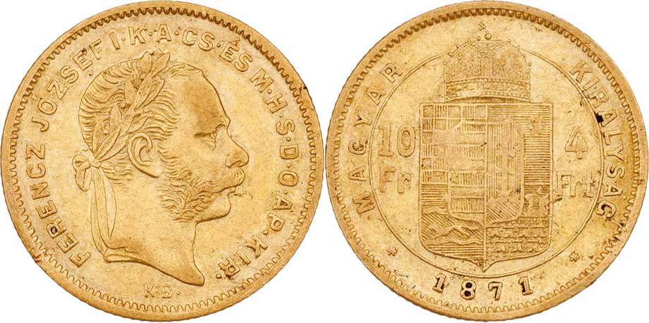 4 Zlatník 1871 KB, 3.188g, dr.hr., dr.rysky, pěkná patina