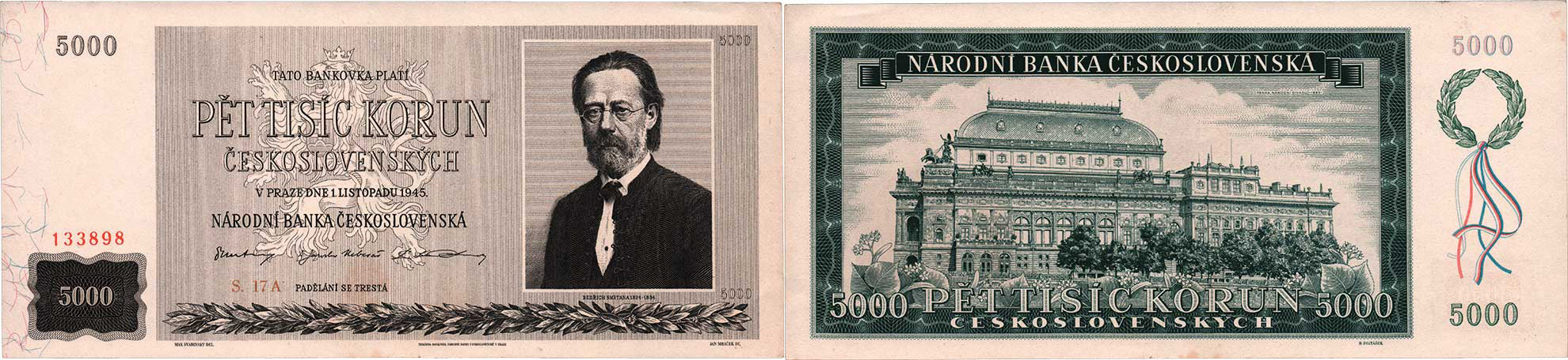 5000 Koruna 1945, série 17A, BHK.79 "neperf."