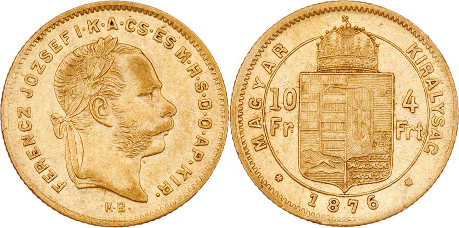4 Zlatník 1876 KB (pouze 24.000 ks), 3.195g, nep.hr., nep.rysky, téměř R!