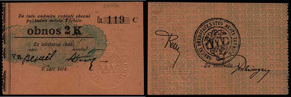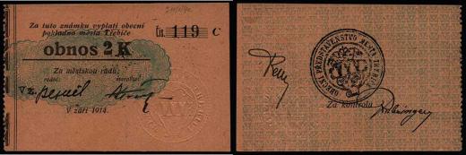Třebíč, 2 Koruna - září 1914, D-H.211/1.9e