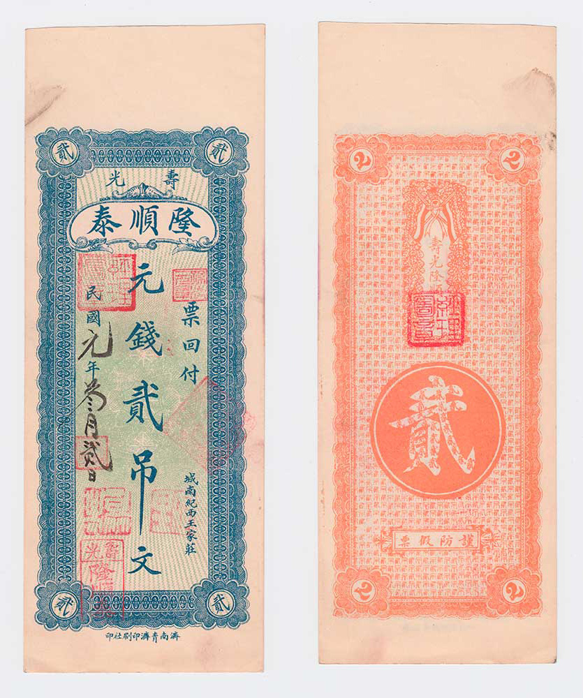 2 Tiao b.l. - Lung Shun Tai - nevydaný formulář, skvrny