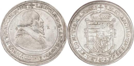 Tolar 1621, Ensisheim, M-A.111, KM.257.2, církevní šat arcivévody, 28.267g, nep.exc., nep.zvlněný