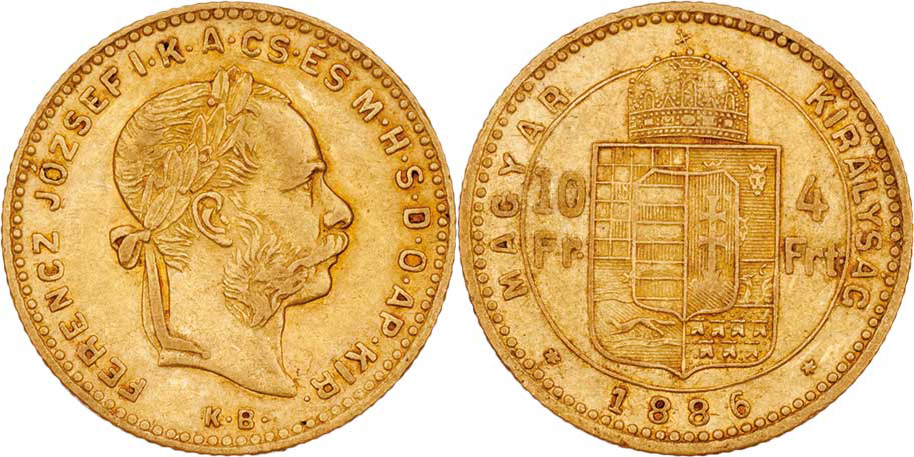 4 Zlatník 1886 KB (pouze 39.000 ks), 3.195g, nep.hr., nep.rysky, pěkná patina R!