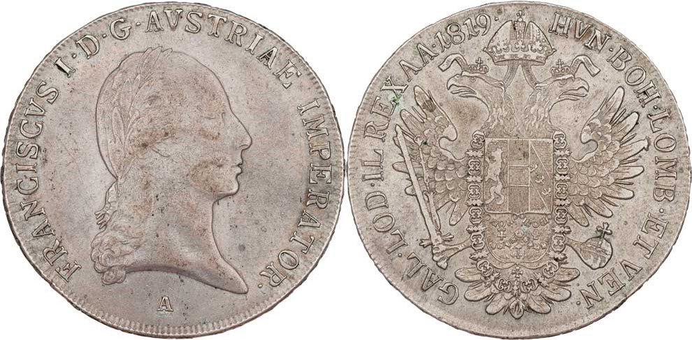 Tolar konvenční 1819 A, 27.940g, nep.hr., nep.rysky, patina R!