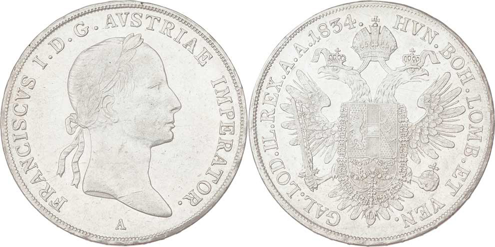 Tolar konvenční 1834 A, 28.041g, mírně just., dr.hr., nep.rysky R!
