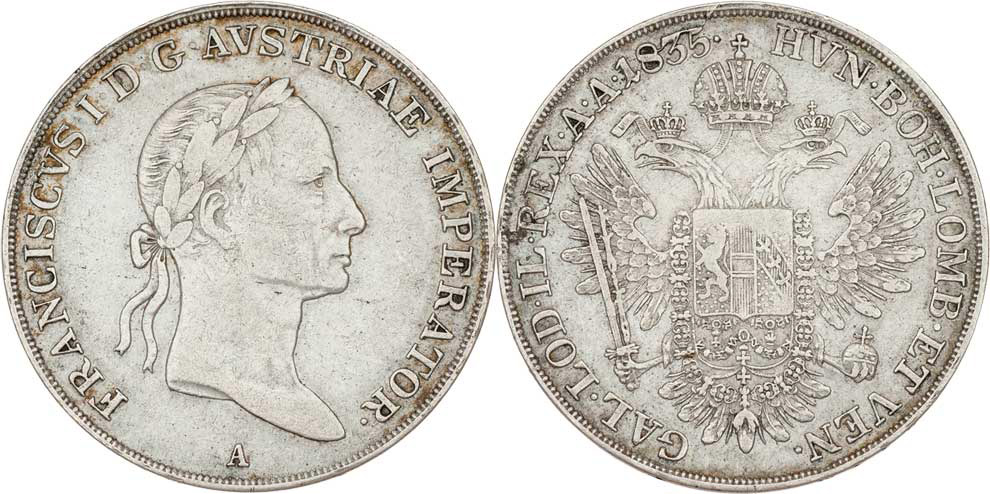 1/2 Tolar 1835 A, 13.894g, nep.vada razidla, nep.hr., nep.rysky, pěkná patina R!