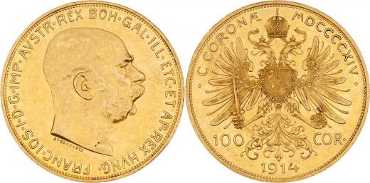 100 Koruna 1914 (pouze 1.195 ks), 33.868g, nep.hr., nep.rysky, téměř