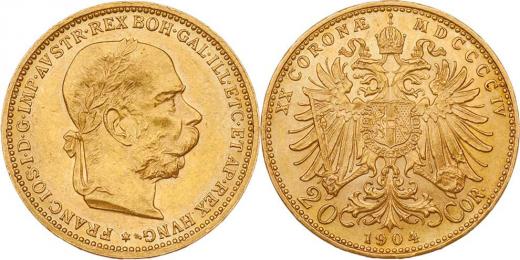 20 Koruna 1904, 6.772g, nep.hr., nep.rysky, téměř