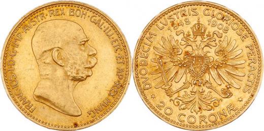 20 Koruna 1908 - jubilejní, 6.776g, nep.hr., nep.rysky, patina
