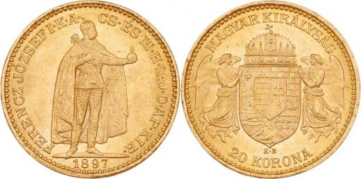 20 Koruna 1897 KB, 6.770g, nep.hr., nep.rysky, téměř