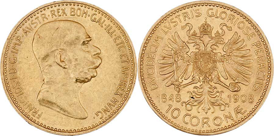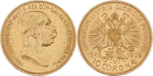 10 Koruna 1908 - jubilejní, 3.384g, dr.hr., nep.rys.