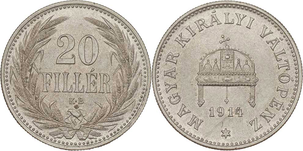 20 Haléř 1914 KB (Ni) - novoražba značená "*", 4.050g, patina