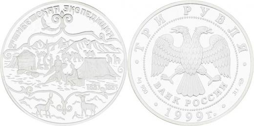 3 Rubl 1999 - 2.tibetská expedice 1883 - 1885, Y.639 (Ag900, 34.73g, 15.000 ks), kapsle R!