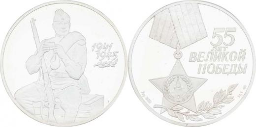 3 Rubl 2000 - 55 let vítězství, Y.674 (Ag900, 34.94g, pouze 5000 ks), kapsle, skvrna RR!