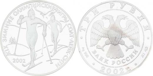 3 Rubl 2002 - ZOH Salt Lake City, Y.738 (Ag900, 34.88g, 25.000 ks), kapsle, skvrna