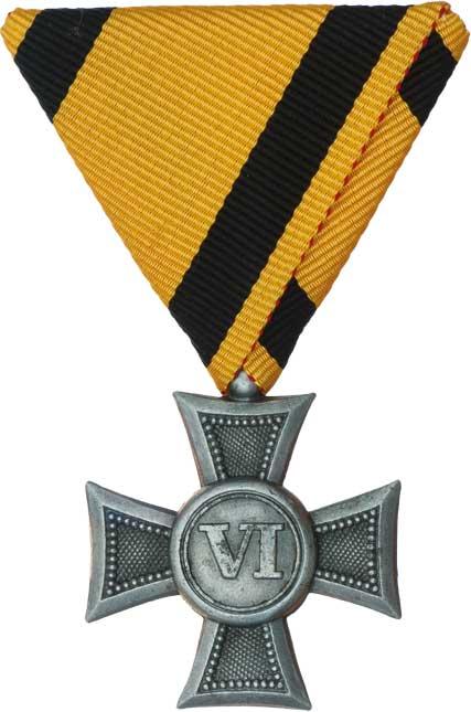 Služební kříž za 6 let - typ 1913, Marko.381f, VM.2/8-1913-F, zinkový kříž, zinkový medailon bez věnce, nepůvodní stuha