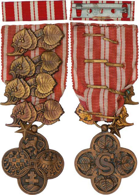 Československý válečný kříž 1914-1918, VM.5-I-A, I.vydání (1918 - 1920), na stuze 4 lipové ratolesti a hvězdička, malá stužka