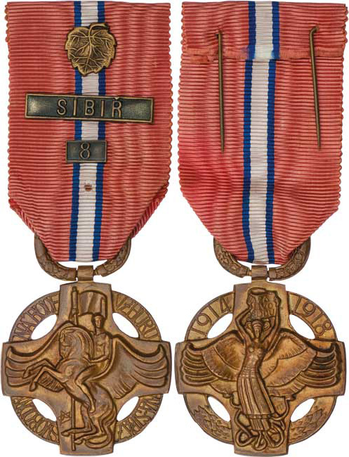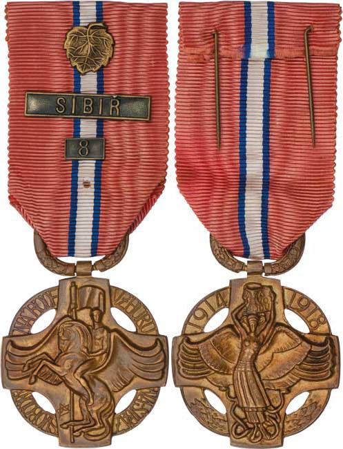 Čs.revol.medaile - světlá, těžká, Sign., VM.6-B, II.vydání (1920-1938), na stuze štítky "SIBIŘ", "8" a lipový lístek