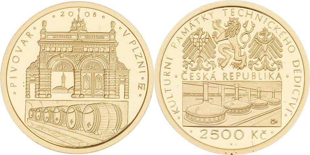 2500 Koruna (1/4 Unce) 2008 - Pivovar v Plzni, KM.104 (Au999, 7.78g, 10.800 ks), kapsle, etue, karta