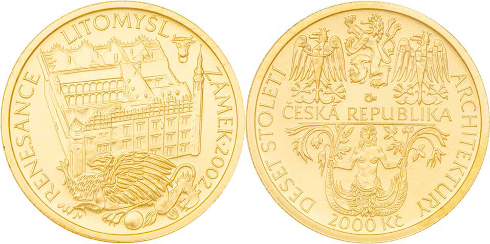 2000 Koruna 2002 - Zámek Litomyšl, KM.61 (Au999, 2.094ks), 6.263g, kapsle, etue, text