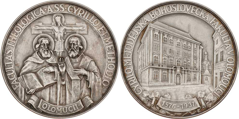 Hladík - Cyrilometodějská bohoslovecká fakulta 1937 - postavy světců, Kristus, opis / budova, opis, Sign., patinované Ag987, 50mm, 45.959g, BK.9A