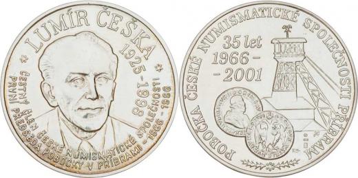 Čáka a Kožuch - Lumír Češka - I.předseda pobočky 2001 - poprsí čelně, opisy / šachta Bohutín, dvě mince, písmo, Sign., Ag925, 50mm, 69.405g, FM.19, 50ks RR!