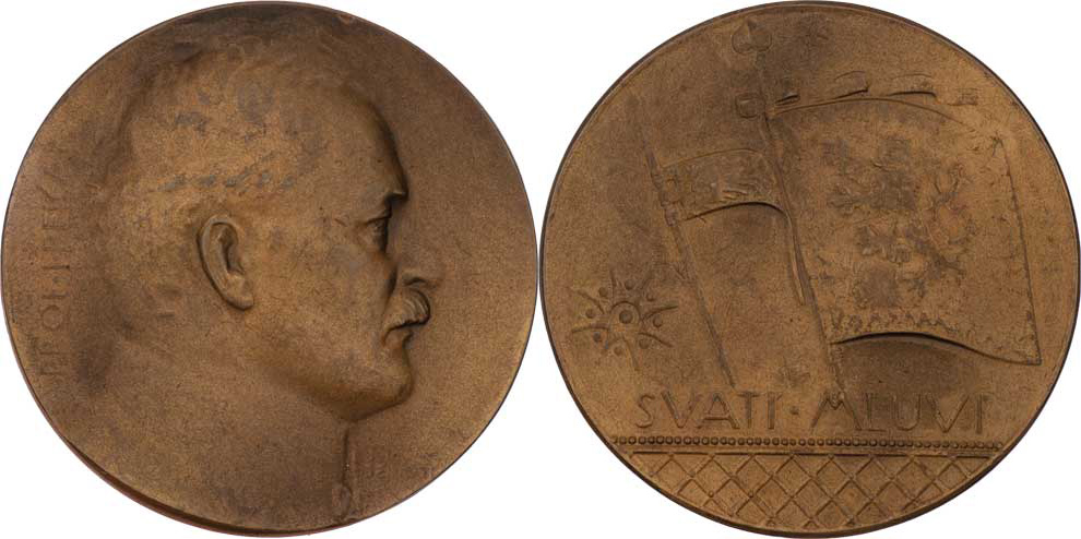 Prof.Jos.Pekař, historik (narozen 1870) 1919 - poprsí zprava, nápis / hvězda, praporec a korouhev, nápis, Sign., patinovaný bronz 50 mm, 100ks, téměř RR!